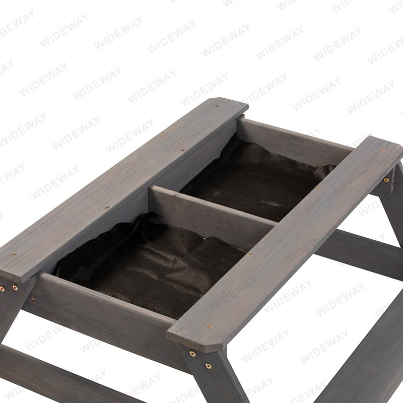 WIDEWAY® компаниясы әзірлеген және өндірген үстелі бар ашық түрлендірілетін құмсалғыш бұл үстел ойнайтын жерде сырттағы шуақты күндерге және оқу уақытын біріктіретін тамаша қосымша екенін білдіреді, сонымен қатар оны ашық ауада тамақтану немесе сурет салу үшін пикник үстелі ретінде пайдалануға болады. ойын ойнау.