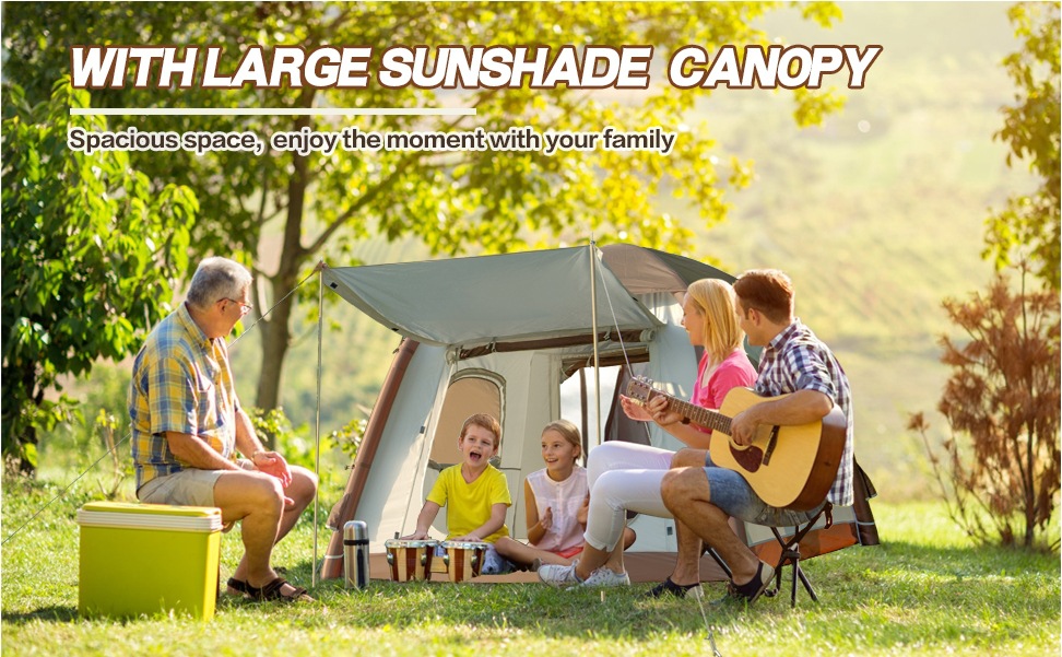 · 【Өте жақсы қолөнер】: үрленетін шатырда екі торлы экран және сегіз MESH экран терезесінің айналымы бар; Жоғарғы жағында Lanyard бар, сізге атмосфераға толы шамдарды іліп қоюға мүмкіндік береді, сонымен қатар сақтау сөмкелерін ұялы телефондар, ұсақ заттар орналастырылуы мүмкін; Арматураланған жер тырнақтары шатырды қатты етеді, әр есік пен терезені ашық емес ойнауға, өте ыңғайлы ойнауға болады.