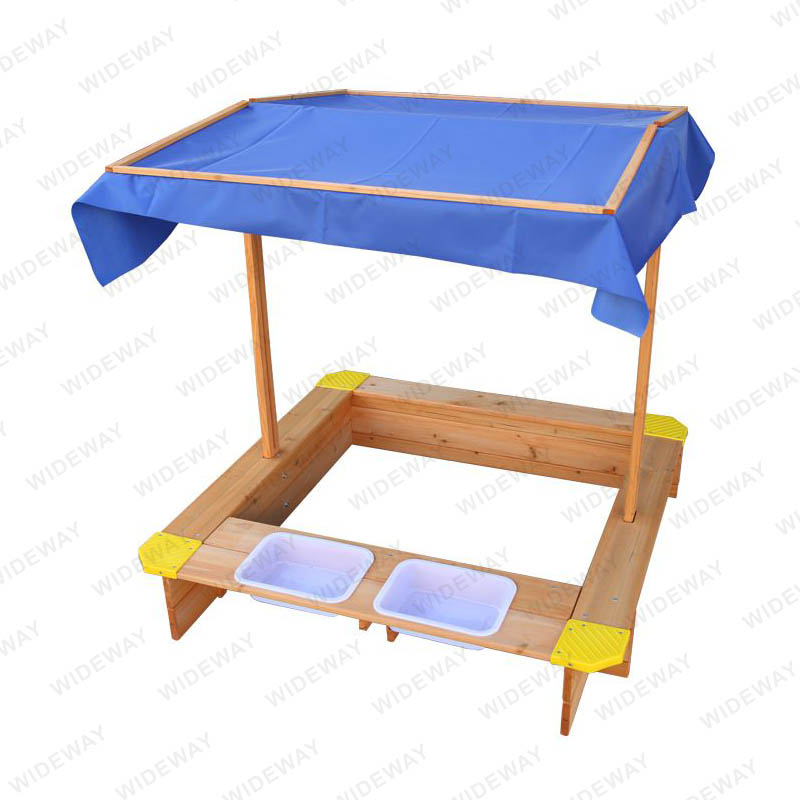 Қақпағы бар WIDEWAY реттелетін сыртқы құмсалғышы су өткізбейтін және ультракүлгін сәулелерге төзімді және ойын аяқталған кезде құм жамылғысы ретінде пайдалану үшін төмендетілуі мүмкін. Құмды таза ұстау және жердегі ылғалдан аулақ болу үшін, кем дегенде, нейлон төсемі кіреді. Екі-үш балаға арналған кең орын бар, біздің шатырлы құм шұңқыры олардың барлығына тамаша ашық ойынды уәде етеді.